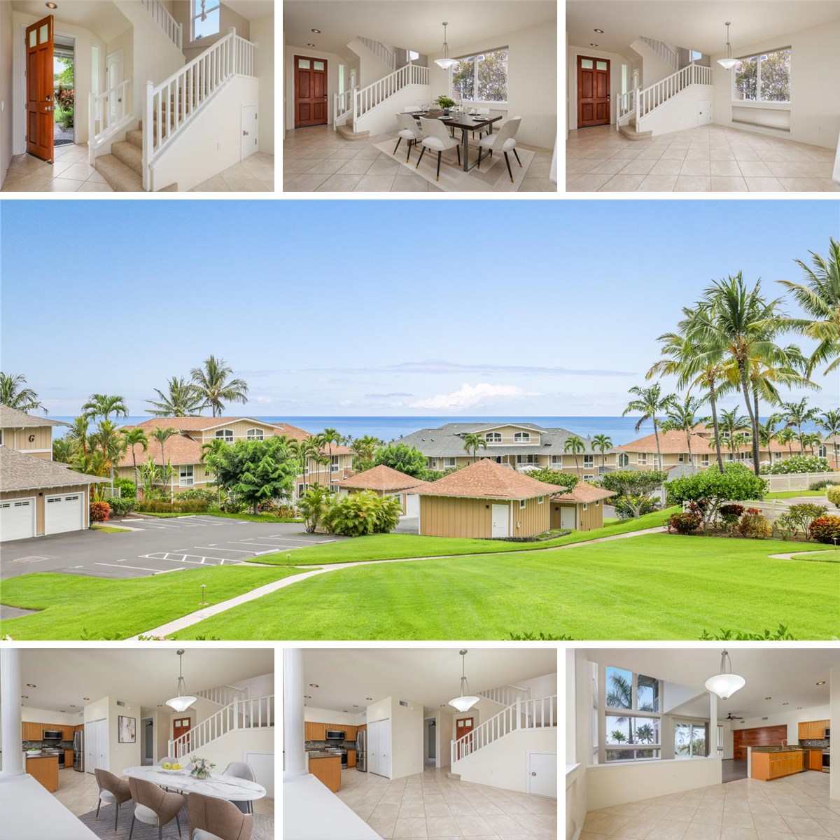 Fantastic end unit at Kona Sea Villas at the upper level of this private gated community. Unit E4 is a three bedroom, three bath home with an additional home office, family room/reading room or open space.